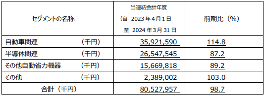 「3.連結財務諸表及び主な注記」の「補足資料 生産、受注及び販売の状況」に関する以下の事項