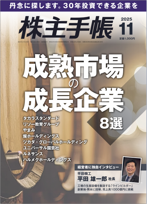 一般投資家向けの投資専門誌『株主手帳(発行:青潮出版)』の11月号(10月17日発売)に、当社代表取締役社長執行役員 平田雄一郎のインタビュー記事が掲載されました。