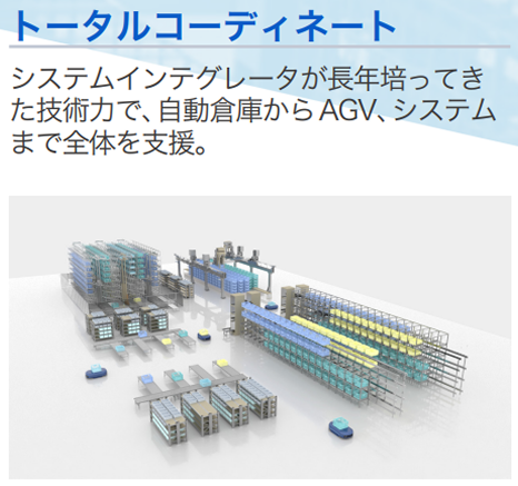 | トータルコーディネート | 自動倉庫からAGV、システムまで全体をコーディネート |