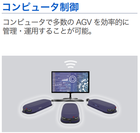 | コンピュータ制御 | コンピュータで多数の AGV を効率的に管理・運用することが可能 |