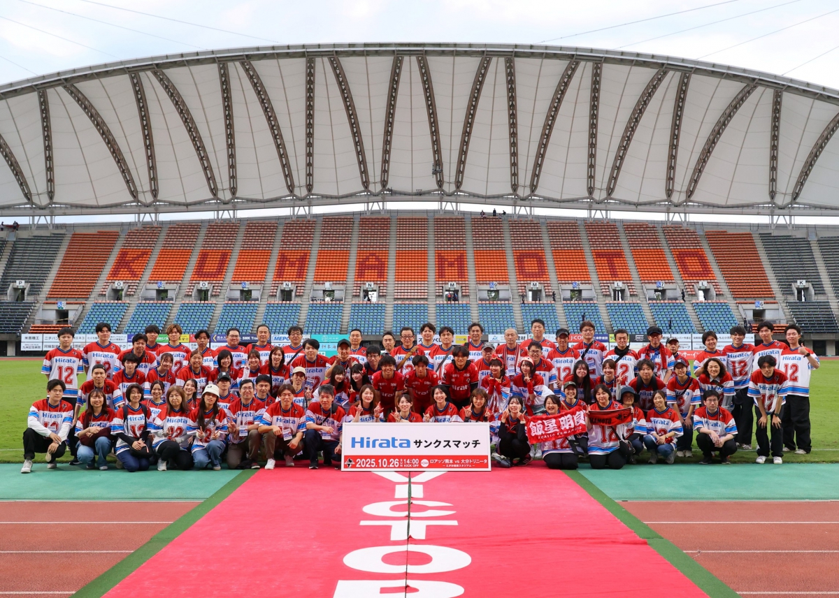 地域活性化の一環として、ロアッソ熊本ホームゲームにおいて「Hirataサンクスマッチ(冠試合)」を開催。地域の皆さまへ感謝を伝えるとともに、ご来場の方々との交流やイベントを通じて、地域との絆を深めています。